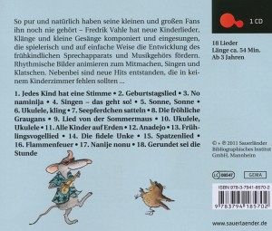 So pur und natürlich haben seine kleinen und großen Fans ihn noch nie gehört - Fredrik Vahle hat neue Kinderlieder, Klänge und kleine Gesänge geschrieben, die spielerisch und auf einfache Weise die Entwicklung der frühkindlichen Sprachmotorik und des Musikgehörs fördern. Rhythmische Bilder animieren zum Mitmachen. Nebenbei sind neue Lieder entstanden, die ihren Weg ins Kinderzimmer finden werden.