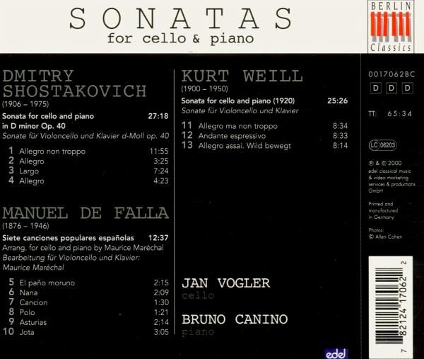 | 1 | Sonate für Violoncello und Klavier d-moll op. 40 | ||