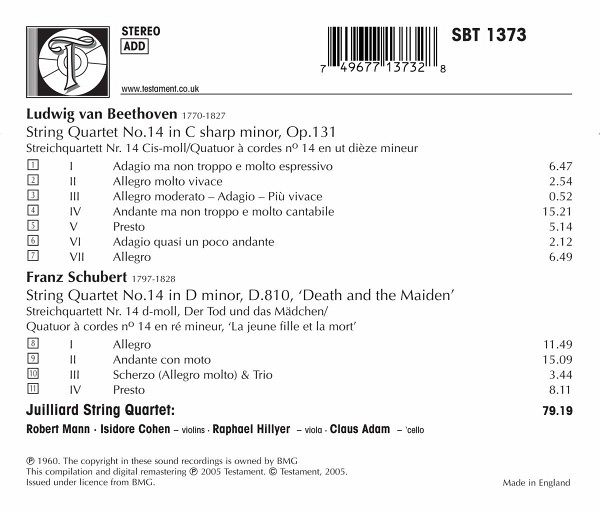 | 8 | Streichquartett Nr. 14 d-moll D 810 "Der Tod und das Mädchen" | ||