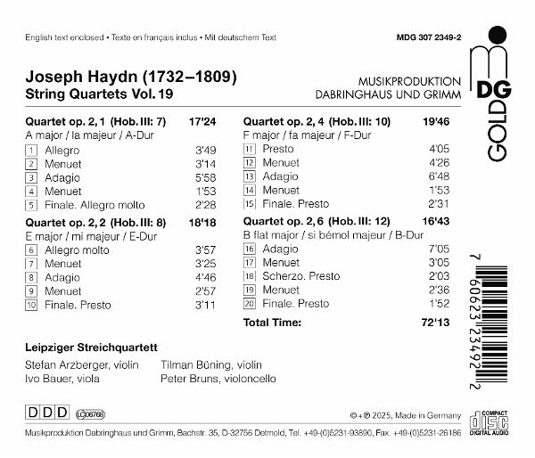 | 1 | Streichquartett Nr. 7 A-Dur op. 2 Nr. 1 Hob. III:7 | ||
