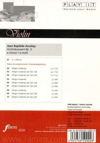 Die Edition "Play It - improve your music" - Studien-CDs für Instrumentalisten - entstand aus dem Bedürfnis heraus, allen Musizierenden, die nicht das Glück einer guten Begleitung haben, die Möglichkeit zum Zusammenspiel zu geben. Eine "Play It" CD aus dem Hause FMR - famiro records beinhaltet deswegen neben der Klavier-, Cembalo- oder Orchester-Begleitung im Originaltempo das Stück auch immer noch in bis zu drei weiteren Übe-Tempi. Da viele Schüler zu Hause ohne Begleitung üben, haben sie meist nur eine unzureichende Vorstellung von der Gesamtheit des zu spielenden Stückes. Das Üben von kleinen oder großen Werken (z.B. Violinkonzerte) ohne Begleitung ist noch dazu auch immer eine trockene Angelegenheit. Ganz anders, wenn dem Musizierenden die entsprechende rhythmische und harmonische Unterstützung durch die CD zuteil wird, er erwirbt dadurch nicht nur Intonationssicherheit sondern auch Ensemblegefühl, was ihm auf seinem weiteren musikalischen Weg sicherlich zugute kommen wird. Die auf die besondere Lernsituation des Schülers abgestimmte, langsame Fassung der Begleitung, ist dabei von nicht geringer Bedeutung. Mit ihr können die Schüler schon relativ früh mit Begleitung üben, auch wenn das Originaltempo noch nicht beherrscht wird. Play It CDs gibt es grundsätzlich ohne Noten zu kaufen