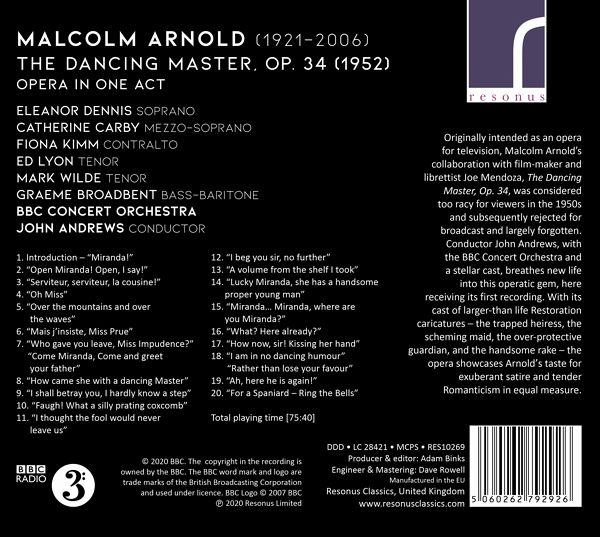 | 1 | The Dancing Master op. 34 (Oper in 1 Akt) (Gesamtaufnahme) | ||