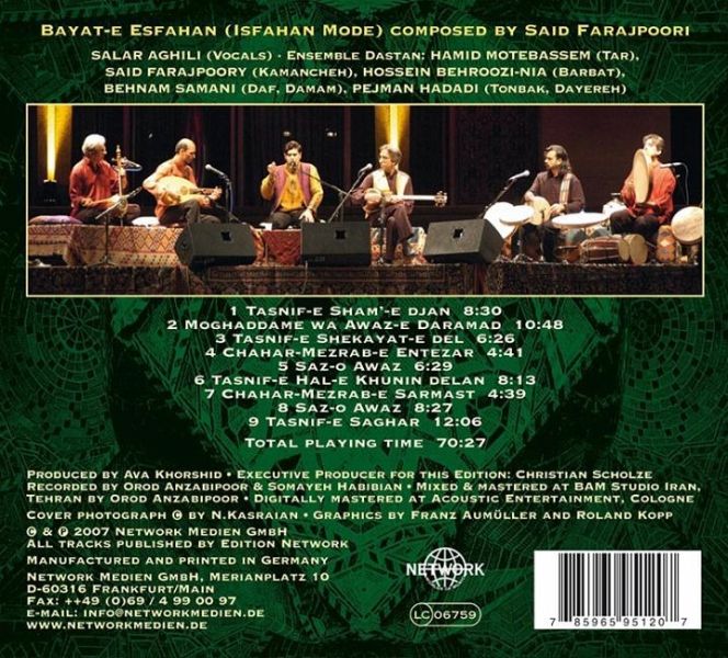 Salar Aghili singt in der Tradition seines Meisters Ta¿rif und des international berühmten Sängers Shadjarian von der Suche nach Perlen in einem endlosen Meer. "Das Herz brennt, um das Feuer der Liebe in Ewigkeit zu entflammen." In der Zusammenarbeit mit dem Dastan Ensemble entsteht eine Klangfarbe, die im Zaubergarten der persischen Musik und Poesie neu und außergewöhnlich ist. CD mit allen Liedtexten.