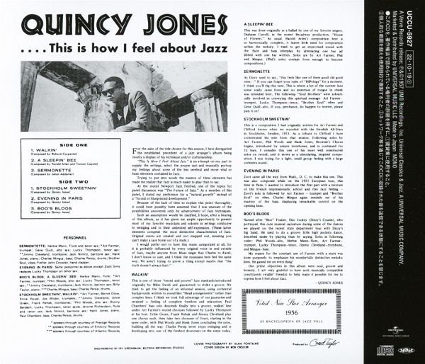 Die in Japan erfolgreichen audiophilen SHM-CDs (Super-High-Material-Compact-Disc) werden mit einem hochwertigen Kunststoffmaterial gefertigt, das für verbesserte Transparenz und Klangdefinition sorgen soll. SHM-CDs lassen sich auf allen handelsüblichen CD-Playern abspielen. Acht SHM-CDs werden jetzt dem kürzlich verstorbenen legendären Quincy Jones gewidmet. Aus dessen umfangreichem Katalog wurden vom frühen Big-Band- bis hin zum 80er-Jahre-Jazzfunk-Album wirkliche Perlen ausgewählt. SHM-CDs werden nur in Japan hergestellt und sind daher auch hierzulande als Importe mit Obi-Streifen erhältlich, für Sammler ein zusätzliches Kaufargument. Die Alben: 'This Is How I Feel About Jazz' (1956) ?The Quintessence? (1962) ?Big Band Bossa Nova' (1962) ?Walking in Space? (1969) ?Body Heat' (1974) ?Mellow Madness' (1975) ?Sounds...and Stuff Like That!!' (1978) ?The Dude' (1981)