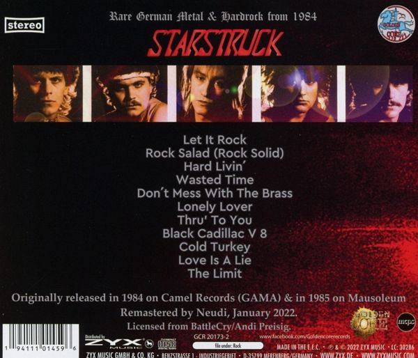 Und wieder buddeln Golden Core eine vergessene Perle aus dem German Metal Underground, auch wenn das Wort Hardrock hier ebenso angebracht wäre. 1984 veröffentlichte die Band STARSTRUCK aus Karlsruhe ihr einziges Lebenszeichen: Die LP Thru´ To You. Damit war man regional nicht weit weg von GAMA Records, die ihren Sitz in Kirchheim/Teck hatten und das Potenzial der lokal bereits angesagten Gruppe erkannten. Aufgenommen wurde die Platte im Spygel Studio mit Engineer Batze Kramer. Eben dieser hat auch kultige Scheiben von Bands wie Tyrant, Stormwitch, Bloody Six, Vampyr, Gravestone, Restless oder Necronomicon veredelt. Thru´ To You ist purer Zeitgeist und dazu passt auch das Cover, welches beim genauen Hinschauen viel Humor beweist.Karlsruhe, Stuttgart, Heidelberg melodischer Heavy Metal war in diesem Großraum immer schon mehr angesagt als im Ruhrgebiet oder im Norden. Nur München wurde noch bekannt für seinen Hang zum AOR. Starstruck balancieren geschickt den Mittelweg zwischen Härte und Radiofreundlichkeit, was bei den gut arrangierten Songs und dem spielerischen Können hätte zum Erfolgsrezept werden können. Leider war die Firma GAMA nicht in der Lage, das Album adäquat zu promoten. Immerhin wurde es ein Jahr später auch von Mausoleum (Belgien) lizensiert, 1990 dann auch erstmals auf CD (Aurophon, in der Brainstorm Serie). Golden Core machten auf Starstruck bereits 2021 aufmerksam, denn sie sind mit einem Track auf der Compilation Sound & Action Rare German Heavy Metal & Hardrock Vol. 1 zu finden. Zum ersten Mal gibt es nun eine remasterte Version des kultigen Albums auf CD, später im Jahr auch auf Vinyl. Es wurde Zeit!