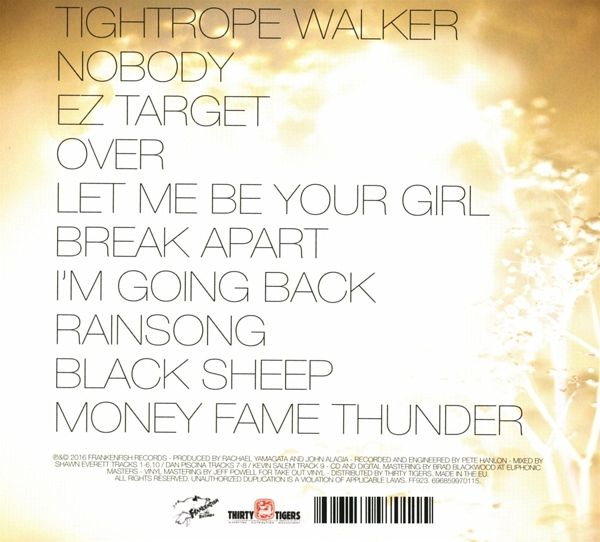 Rachael Yamagata veröffentlicht am 23. September "Tightrope Walker" über ihr Label Frankenfish Records. Der Nachfolger von "Chesapeake" (2011) ist Yamagata's viertes Soloalbum und wird von einer US- und Europa-Tour (die bald bekanntgegeben wird) begleitet. Neben ihren drei Longplayer-Releases und 5 EPs gab es in den vergangen Jahren Kollaborationen u.a. mit Ryan Adams, Bright Eyes oder Ray LaMontagne. Die Singer/Songwriterin aus Virginia suchte auf dem neuen Album auch thematisch neue Herausforderungen. Indirekt wurde sie vom französischen Hochseilartist Philippe Petit, der 1974 weltweit Aufmerksamkeit durch seinen illegalen Drahtseilakt auf einem Hochseil zwischen den Türmen des World Trade Centers in New York, erregte, beeinflusst. Eine ganze Reihe unterschiedlicher Musiker unterstützten Yamagata bei den Aufnahmen, wie z,B. Kevin Salem (Yo La Tengo, Dumptruck), Owen Biddle (The Roots), Zach Djanikian (Amos Lee, Amy Helm), Ben Perowsky (Rufus Wainwright), Russell Simins (Jon Spencer Blues Explosion), Oli Kraus (Sia), Michael Chaves (John Mayer, Adam Cohen), Matt Chamberlain, Victor Indrizzo, Randy Cooke etc. Yamagata's langjähriger Produzent John Alagia (John Mayer, Dave Matthews Band) kam schließlich als Ko-Produzent dazu und für den Mix war Shawn Everett (Alabama Shakes) verantwortlich.