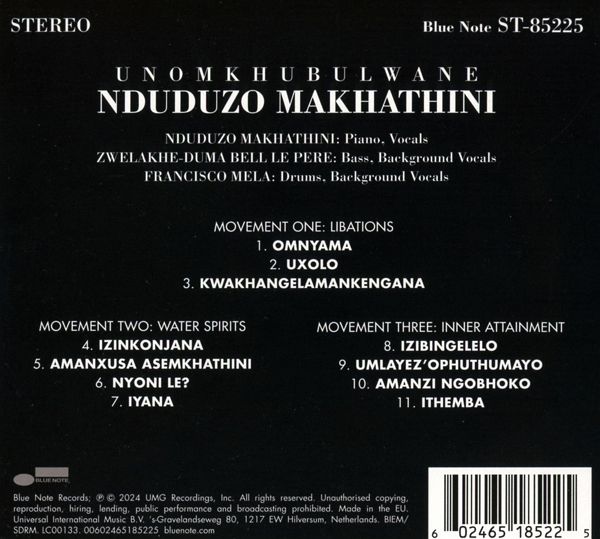 Das tiefgründige Werk, das eine Hommage an die Zulu-Göttin uNomkhubulwane darstellt und die tragische Geschichte der Unterdrückung Afrikas erforscht, besteht aus drei Sätzen und präsentiert Makhathini in Triobesetzung mit Zwelakhe-Duma Bell le Pere am Bass und Francisco Mela am Schlagzeug.