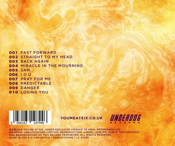 You Me At Six haben seit ihrer Gründung als Teenager im Jahr 2004 in Weybridge, Surrey, eine Reihe bemerkenswerter Erfolge zu verbuchen: Dazu zählen u.a. vier Gold-Alben, vier Top 5-Alben inklusive dem Nummer 1-Album "Cavalier Youth", ausverkaufte Arena-Touren, mehrere ausverkaufte US-Headliner-Touren sowie mit "Room To Breath" einen Nummer 1 Rock-Song in Großbritannien & Australien und einen Top 5 Rock-Radio-Track in Nordamerika. Ihr brandneues, sechstes Studioalbum "VI" erscheint auf ihrem eigenen Label Underdog Records in Partnerschaft mit AWAL Recordings Ltd..Aufgenommen in den VADA Studios mit Dan Austin (Biffy Clyro, Massive Attack, Pixies, etc.) und zum ersten Mal von der Band co-produziert, präsentiert "VI" die Band so, wie sie noch nie zuvor geklungen hat. "VI" ist wahrscheinlich nicht das, was man soundtechnisch von einem neuen Album von You Me At Six erwartet. Selbstbewusst wechselt die Band zwischen verschiedenen Stimmungen und Stilen. Sie behalten weiter ihren Biss, überraschen aber zudem mit ansteckendem Pop. 2018 markiert ein neues Kapitel für eine der größten Gitarrenbands Großbritanniens.