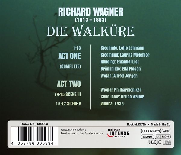 Diese CD ist nicht nur ein Muss für alle Wagner-Apostel, sondern sie dürfte auch allgemein die Freunde historischer Klangdokumente interessieren seien es die Fans von großen Jahrhundert-Dirigenten, bedeutenden Gesangssolisten oder von Orchestern wie den Wiener Philharmonikern. Am 22. Juni 1935 fand sich d i e Starbesetzung für Wagner- Opern zur Aufnahme des 1. Aktes und den Siegmund/ Sieglinde-Szenen des 2. Aktes der Oper Die Walküre von Richard Wagner in einem Wiener Tonstudio ein, noch nicht wissend, dass eine Kultaufnahme mit Referenzstatus entstehen würde. Die Besetzung: Der unübertroffene dänische Heldentenor Lauritz Melchior als Siegmund, die ausdrucksintensive Sopranistin Lotte Lehmann als Sieglinde und einer der wohl dunkelsten und finstersten Bässe, Emanuel List, als Hunding. Die Klangtechnik der Dreißiger Jahre hat freilich nicht die glatte Stereo-Perfektion der heutigen Zeit, aber man hat die Originale behutsam und sorgfältig restauriert. Die Aufnahme ist sehr lebendigdurch ihr dramatisches Feuer. Lauritz Melchior, immer schon ein Ausnahmesänger, erfüllt den Siegmund mit verzehrender Intensität und gestaltet bis in die Details höchst ausdrucksstark. Lotte Lehmann lässt den ganzen Glanz ihrer herrlichen, lyrischen Stimme hell aufstrahlen. Emanuel List gestaltet den Hunding wie eine schwarze Statue, mächtig im Klang und düster drohend. Und dies alles unter dem Dirigenten Bruno Walter, der die Wiener Philharmoniker musikalisch auf Hochtouren bringt ein erschütterndes Musiktheatererlebnis und eine Krönung aller historischen Wagner-Dokumente.