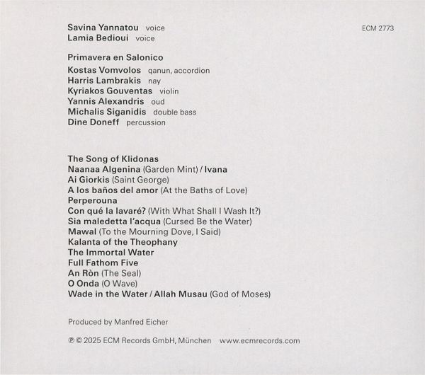 Das fünfte ECM-Album von Savina Yannatou dreht sich um das Thema Wasser in seinen vielfältigen Erscheinungsformen. Wasser als Segen und Fluch. Eine lebenserhaltende Quelle und eine tödliche Bedrohung durch die elementare Kraft des Sturms. Shakespeares 'Der Sturm' mit dem Lied 'Full Fathom Five' des Geistes Ariel diente der griechischen Sängerin Yannatou und der Band Primavera en Salonico als inspirierender Ausgangspunkt für ein Projekt, an dem auch die tunesische Sängerin Lamia Bedioui beteiligt ist. Wenn Savina und Lamia zusammen singen, entsteht ein besonderer Zauber - wie schon auf Yannatous Terra Nostra vor mehr als 20 Jahren zu hören war. In der vorliegenden Aufnahme verkörpert Bedioui das Reich der Wüste, indem sich die arabische Sprache und der Beduinendialekt mit den Sprachen des mediterranen Europa und anderswo überschneiden. Die Lieder stammen aus vielen Himmelsrichtungen und historischen Epochen. Ein traditionelles Stück aus Ägypten geht über in eines aus Nordmazedonien. Eine Vertonung eines Gedichts des arabischen Prinzen Abu Firas al-Hamdani aus dem 10. Jahrhundert steht zwischen einem süditalienischen Klage- und einem griechischen Weihnachtslied. Ein irisch-gälisches Stück ist einer korsischen Melodie und Primavera En Salonicos einzigartiger Interpretation des afro-amerikanischen Spirituals 'Wade In The Water' vorangestellt. Transkulturell in ihren musikalischen Leidenschaften und kühn in ihren stilistischen Gegenüberstellungen, beleuchten Savina und ihre Gefährten auch die Brücken zwischen den Traditionen.