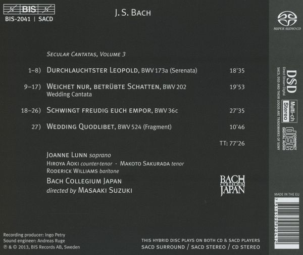 | 27 | Quodlibet (Was sind das für große Schlösser) BWV 524 (Fragment für 4 Soli und Basso continuo) | 00:11:19 | |