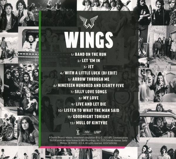 DIe WINGS Collection ist die ultimative Anthologie einer Band, die den Sound der 1970er Jahre maßgeblich geprägt hat. Diese liebevoll kuratierte Sammlung, persönlich von Sir Paul McCartney betreut, vereint 32 internationale Hits von Wings in nur einer Collection. Darunter 'Band on the Run', 'Live and Let Die', 'Jet' und 'Let ?Em In' - Songs, die bis heute in seinen Live-Shows zu hören sind. Das Design stammt von Sir Paul McCartney und Aubrey 'Po' Powell (Hipgnosis). Die WINGS Collection erscheint in verschiedenen Ausführungen - von CD über Standard und farbigen 1LPs bis hin zu aufwendigen 3LP Colour-Vinyl-Editionen, die exklusiv erhältlich sind. Allesamt mit jeweils unterschiedlichem Umfang an Bonusmaterial, wie erweiterten Booklets, Album-für-Album Notizen, Postern und Stickern. Außerdem enthält jedes Booklet eine persönliche Einführung von McCartney sowie Originalporträts der Band von Humphrey Ocean.
