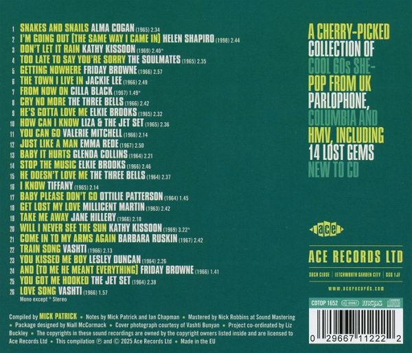 Die letzten Ausgaben der Serie konzentrierten sich auf die Kataloge von Decca, Pye und Philips/Fontana/Mercury. Diese neue Ausgabe enthält eine handverlesene Sammlung von coolem She-Pop aus der EMI-Labelfamilie Parlophone, Columbia und HMV. Die meisten Titel wurden in Abbey Road aufgenommen, eine kurze U-Bahnfahrt vom EMI-Hauptquartier in Marylebone entfernt, daher der Untertitel 'Marylebone Beat Girls'. - Von den 26 Titeln ist großzügige Hälfte neu auf CD. Wie bei dieser Serie üblich, enthält die CD ein schickes 24-seitiges Booklet voller Bilder und einem 7.000 Wörter langen Songkommentar von Compiler Mick Patrick und Genre-Experte Ian Chapman.