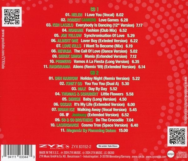 Im Jahr 1989 geht die große Italo Disco Ära zu Ende. Über viele Jahre waren die Titel ein fester Bestandteil der europäischen Charts. Unzählige Künstler wie Den Harrow, Radiorama, Ken Laszlo , Valerie Dore landeten zahlreiche Hits und begeisterten die Fans mit ihren eingängigen, melodischen Songs. Die CD-Compilation Serie ZYX Italo Disco History 1989 beleuchtet das letzte Jahr der großen Italo Disco Ära. Mit am Start sind: Ken Laszlo, Albert One, Den Harrow, Laserdance, Radiorama uvm. Die Titelauswahl erfolgte, wie auch bei den Folgen davor, in Zusammenarbeit mit der Italo Disco Legende Flemming Dalum.
