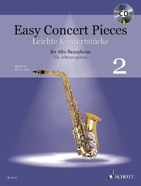 Für den Unterricht und Freizeit - oder die ersten kleinen Konzerte - die Bände der Serie Easy Concert Pieces für Altsaxophon und Klavier enthalten leichte bis mittelschwere Stücke von der Renaissance bis zur Moderne. Die Hefte mit Begleit-CD wollen das nicht sehr umfangreiche Repertoire an Vortragsstücken für Saxophon bereichern und die enthaltenen Titel wurden sorgfältig nach technischen und musikalischen Anforderungen ausgewählt und nach Schwierigkeitsgrad in den drei Bänden angeordnet.Alle Stücke sind auf der beiliegenden CD als Demo- und Mitspiel-Versionen enthalten (Klavierbegleitung). Die im Heft enthaltene Klavierstimme ist so einfach gehalten, dass sie auch von einem Schüler gespielt werden kann, z.B. bei einem Musikschul-Konzert.Band 2 (ED 22554) versammelt Spielliteratur im mittelschweren Bereich. Der Tonumfang reicht von c' bis e'''. Gelegentlich treten ungewohnte Taktarten und Zweiunddreißigstelnoten auf. U.a. mit Werken von Wolkenstein, Peuerl, Schein, Purcell, Telemann, Händel, Mozart, Beethoven, Gounod, Humperdinck, Elgar und anderen.Ebenfalls erhältlich:Band 1 (ED 22553) enthält leichte Literatur: überwiegend im Tonraum d' bis c''' - gelegentlich auch d'''. Die Tonarten bewegen sich zwischen C- und D-Dur bzw. in den zugehörigen Moll-Tonarten. Enthalten sind Werke von Charpentier, Vivaldi, Händel, Bach, Haydn, Mozart, Beethoven, Smetana, Pütz, Moser und anderen.Band 3 (ED 22942) - in Vorbereitung: wird den Schwierigkeitsgrad noch weiter anheben und mit weiterer Spielliteratur versorgen.Schwierigkeitsgrad: 2-3