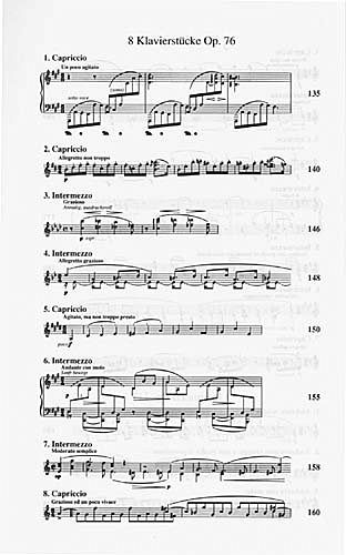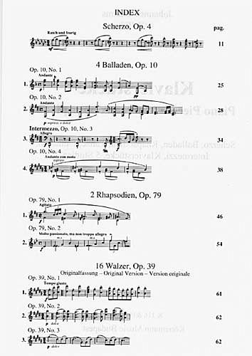 Brahms Instrument war das Klavier. Er trat oft als Pianist auf, häufiger jedoch als Kammermusiker. Sein Schaffen für diese Instrument ist von der Anzahl her eher gering. Nicht aber in seiner Bedeutung, denn diese Werke zählen zu den anspruchvollsten der romantischen Klavierliteratur. Sie werden gewöhnlich als technisch sehr schwierig angesehen, und dies zu Recht. Dennoch zeigt sich, gerade auch in den verschiedenen Versionen mancher Stücke, dass der Komponist mit seinen Werken vor allem ein breiteres Publikum ansprechen wollte.