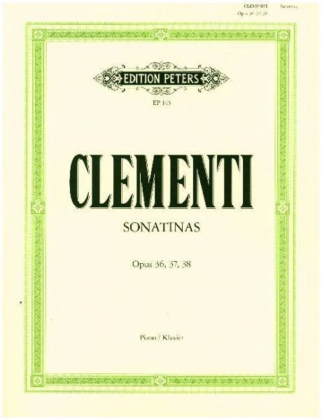 Clementi's 3 Sonatinas for solo piano (Op. 36, 37 and 38). Ever-popular pieces for pianists in the first years of study, and a perfect introduction to the classical style. Classic Edition Peters volume of these works by one of the most influential of all piano teachers.