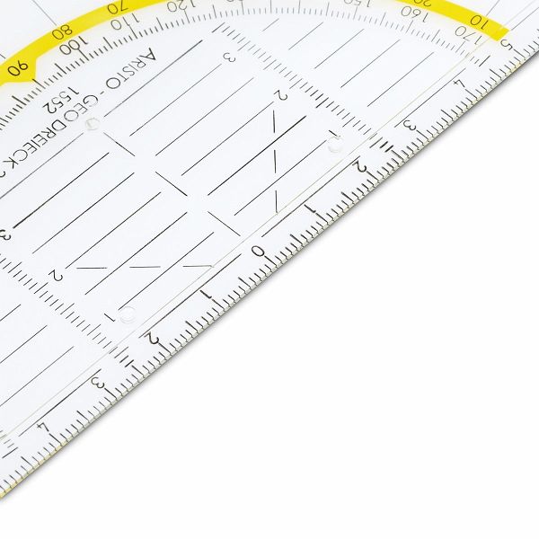 - Maßstab, Winkelmesser, Symmetrie-Maßstab und Parallel-Lineal in einem Zeichengerät