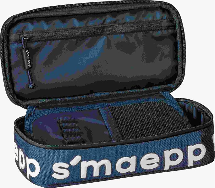 Strapazierfähiges, pflegeleichtes Material (Nylon), Farbe: denim; extra Reißverschlussfach, passend auch für Smartphones zusätzliche Innenklappe mit 5 extra robusten Stiftschlaufen und praktischer Netztasche, Fach für Geometrie-Dreieck und Stundenplan, 2 Einsteckfächer sehr gute Übersichtlichkeit und leichteres Entnehmen durch besondere Formstabilität der charakteristische, verdeckte Outdoor-Reißverschluss ist leichtgängig und robust stabile und hochwertig verarbeitete Nähte sowie elegante Doppelziernähte gummierter Zipper mit markantem Seemannsknoten an einer Outdoor-Reepschnur - zum leichten Aufziehen des Reißverschlusses; Anzahl der Klappen: 1; mit attraktivem s'maepp Logo Aufdruck; im zeitlosen Hardcase-Look; großer und übersichtlicher Stauraum bei kompakten Abmessungen, strukturierte Einteilung schafft Ordnung und Übersicht