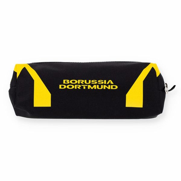 Auch mal faul sein. Aber nicht auf dem Platz, sondern beim Befüllen der Federtasche. Das schwarze Faulenzermäppchen mit BVB-Emblem und Borussia Dortmund-Schriftzug ist perfekt für alle, die ihr Etui nicht immer sortieren wollen. Hier können Stifte, Lineal und Radiergummi einfach reingeworfen werden. Das Runde muss ins Eckige - also Stift ins Mäppchen und fertig.