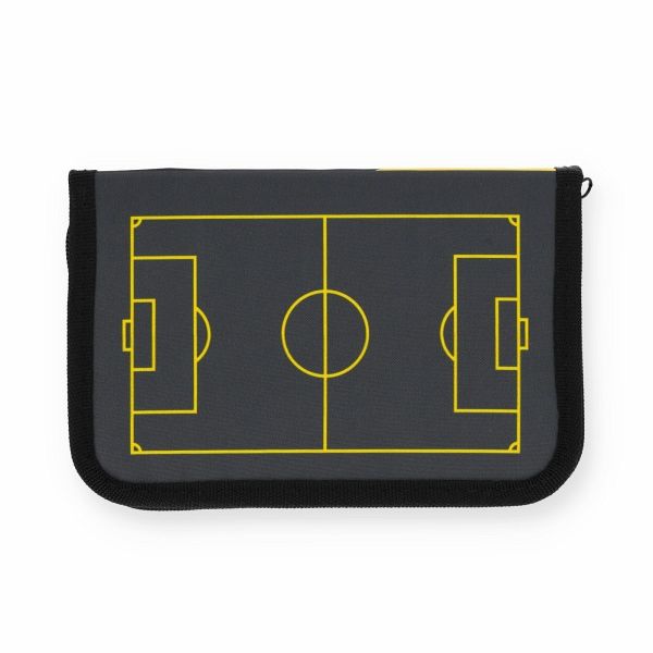 Zudem sticht das coole Design direkt ins Auge: Auf der Vorderseite mit BVB-Emblem und schwarzgelbem Muster, auf der Rückseite mit einem Fußballfeld bedruckt ist das Etui der wahre Hingucker.