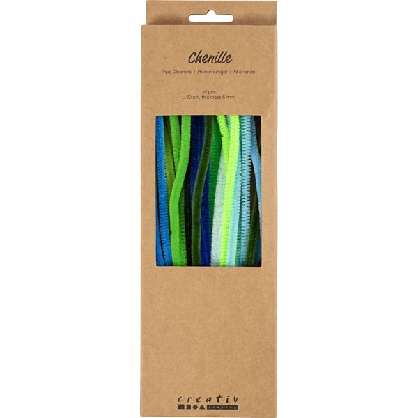 Unsere Chenille-Stiele, auch als Pfeifenreiniger bekannt, sind mit ihren schönen, dicken Nylonborsten ideal, um Ihrer Kreativität Ausdruck zu verleihen. Chenille ist ein ideales Zubehör für viele kreative Hobbyprojekte. Pfeifenreiniger sind tolle Accessoires, um z. B. lustige Haare, Arme, Beine, Flügel usw. für Figuren anzufertigen. Sie haften leicht in Styropor und Silk Clay, ohne dass dafür Kleber benötigt wird. Auch besondere Formen wie Herzen etc. lassen sich mit den biegsamen Pfeifenreinigern kreieren. Als Finish kann man Perlen und andere dekorative Details hinzuzufügen. Die Pfeifenreiniger lassen sich leicht nach Belieben formen und die Enden können ohne Klebstoff durch Verdrehen miteinander verbunden werden. Versuchen Sie, Spiralen zu formen, indem Sie Ihren Pfeifenreiniger um einen Bleistift oder Ähnliches wickeln. Kleben Sie die Pfeifenreiniger mit den Fingern mit Sticky Base fest – oder verwenden Sie eine Klebepistole.