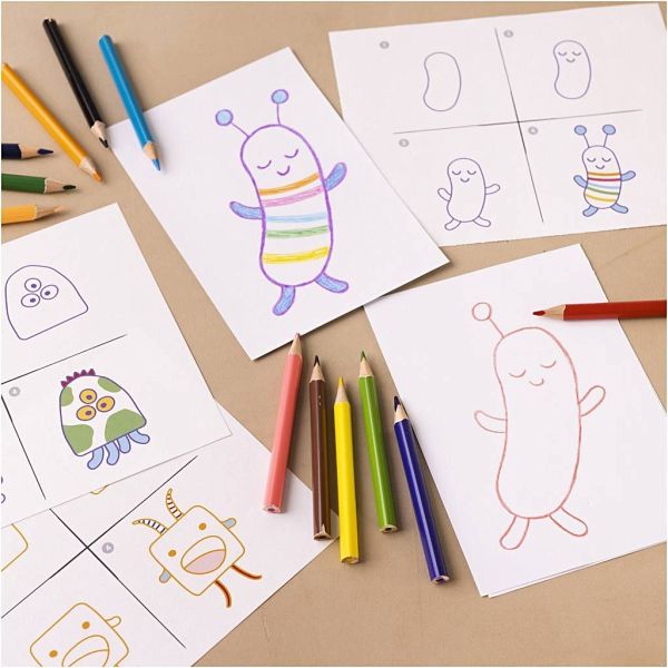 Mit diesem Set können Kinder lernen, wie man fantasievolle Monster malt. Das Set enthält alle benötigten Materialien und Anleitungen. Wenn Ihr Kind gern malt, ist unser Mini Bastelset perfekt. Es enthält alle Materialien, die Ihr kleiner Künstler braucht, vom Zeichenblock und den Buntstiften bis zu tollen Anleitungen, die den Malvorgang begleiten. Das Kind lernt, eigene Monster zu zeichnen, und kann die verschiedenen Teile selbst kombinieren, sodass perfekte Fantasiemonster entstehen.