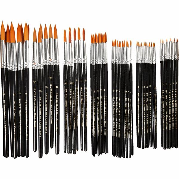 Hervorragende Allround-Pinsel mit Nylonborsten und Holzgriffen zum Malen, Kleben und Lackieren. Diese robusten, geschmeidigen und weichen Pinsel könnten schnell zu Ihren neuen Lieblingswerkzeugen werden. Sie haben lackierte Griffe, die gut in der Hand liegen, und lassen sich vielseitig zum Malen, Kleben und Lackieren verwenden. Säubern Sie die Pinsel nach Gebrauch in lauwarmem Wasser und lassen Sie sie trocknen. Oder legen Sie sie in einen Pinselwascher mit den Borsten nach unten.