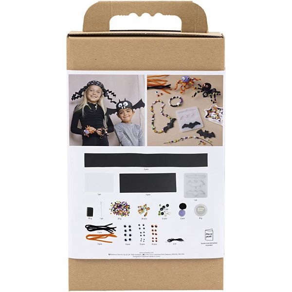 Mit unserer Creativity in a Box können Sie und die Kinder gruselig lustigen Schmuck und Hüte basteln. Enthält Materialien für zehn kreative Halloween-Accessoires sowie alle Anleitungen, die man dafür benötigt. Vergessen Sie teure Kostüme und Plastik-Accessoires – probieren Sie stattdessen selbstgemachten Gruselspaß aus! Mit dem Set können Sie die wildesten Accessoires für Kinderkostüme kreieren: Spinnenhüte mit Wackelaugen, Fledermaushüte, die fast von alleine fliegen können, und kleine Spinnen-Ringe zum Verzieren der Finger. Und wenn das nicht gruselig genug ist, können Sie kleine Fledermäuse aus feinem Ton und Halsketten und Armbänder basteln, um Ihren Halloween-Look abzurunden. Das Ergebnis? Schrecklich coole Accessoires, die zu 100 % original sind.