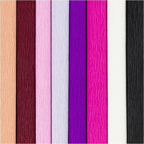 Krepppapier mit einem Kreppanteil von 180 %, das sich hervorragend für die Herstellung von Papierblumen eignet, da es sich leicht dehnen und formen lässt, ohne zu brechen. Das Papier hat eine schöne kreppartige Oberfläche und verliert nicht die Form, nachdem es geformt und bearbeitet worden ist. Beispiel: Blumensträuße aus Krepppapier halten eine kleine Ewigkeit und sind stets attraktiv wie gerade gemacht. Solche Objekte stehen für Nachhaltigkeit, mindern Konsum und Abfall, ihre Kreation belohnt mit Spaß und Entspannung. Sowohl junge Menschen als auch Erwachsene jeden Alters können sich an dieses Material und seine Verarbeitung wagen. Es gibt viele verschiedene Techniken für die Arbeit mit Krepppapier, das auf unzählige Arten gedehnt, geformt und geknittert werden kann. So können Sie eine Vielzahl verschiedener Krepppapier-Blüten, Dekorationen usw. herstellen. Wenn Sie Glitter an den Rändern aufkleben oder den Blumendraht abdecken müssen, empfehlen wir Ihnen Multikleber. Wenn Sie größere Blätter kleben müssen oder wenn es praktisch ist, dass die Kreation sofort trocknet, empfehlen wir, eine Klebepistole mit niedriger Temperatur zu verwenden, damit das Papier nicht schmilzt.