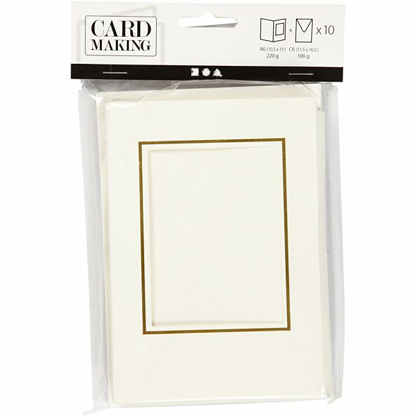 Blanco-Doppelkarte mit Passepartout (220 g) in Hammerschlag-Prägung - mit Einlegeblatt - Umschlag mit Nassklebung (100 g).