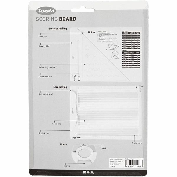 Praktisches Werkzeug aus Kunststoff mit vorgegebenen Hilfslinien zum einfachen, präzisen Falzen von Kuverts und Karton - mit Stanzlinien zum Stanzen von Ecken und Schlitzen - inkl. Anleitung und Maßvorgaben. Geeignet für Kuverts in Größen 9 x 9 - 14 x14 cm (quadtratisch) und 6 x 9, 5-14, 5-19 cm (rechteckig)..