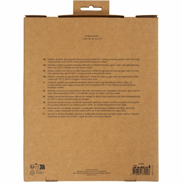 Silikon-Gießform. Die Form kann zum Formen von Beton, Gips und Seife verwendet werden. Hitzebeständig bis 230 °C. Beim Seifen- und Kerzengießen wird die Formmasse heiß, weshalb wir empfehlen, die Silikonform auf eine hitzebeständige Oberfläche zu legen. Gießen Sie die fertig gemischte Gießmasse zum Formgießen von Kerzen, Seife, Bastelbeton, Gips oder anderen Materialien in die Gießform und lassen Sie sie vollständig aushärten. Die geformten Objekte lassen sich leicht aus der flexiblen Silikonform nehmen. Wenn sich danach noch Gießreste in der Form befinden, kann sie mit lauwarmem Wasser abgespült werden.