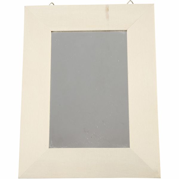 Rechteckiger Spiegel mit Rahmen aus hellem Holz - inkl. Aufhänger. Der Spiegel ist gegen ein Foto oder Bild austauschbar.