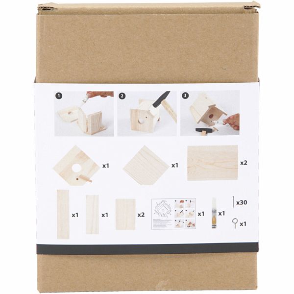 Materialbausatz für ein Vogelhaus aus hellem Holz - mit 25 mm Loch - inkl. Anleitung..