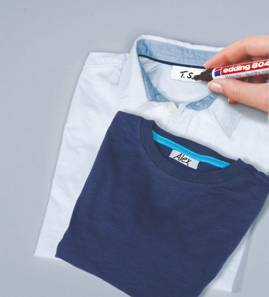 Wäschemarker 8040. Bis zu einer Waschtemperatur von 95 Grad, Geruchsarme Tinte auf Alkoholbasis ohne Zusatz von Toluol/Xylol. Rundspitze. Spezialmarker zum Beschriften von Textilien. Belüftete Kappe nach ISO 11540. PP - Schaft receycelbar. Lichtbeständig. Schonend zur Faser. Schnell trocknend. Mit Clip, Kunststoff. Schaftfarbe: weiß. Strichstärke: 1 mm. Schreibfarbe: schwarz.
