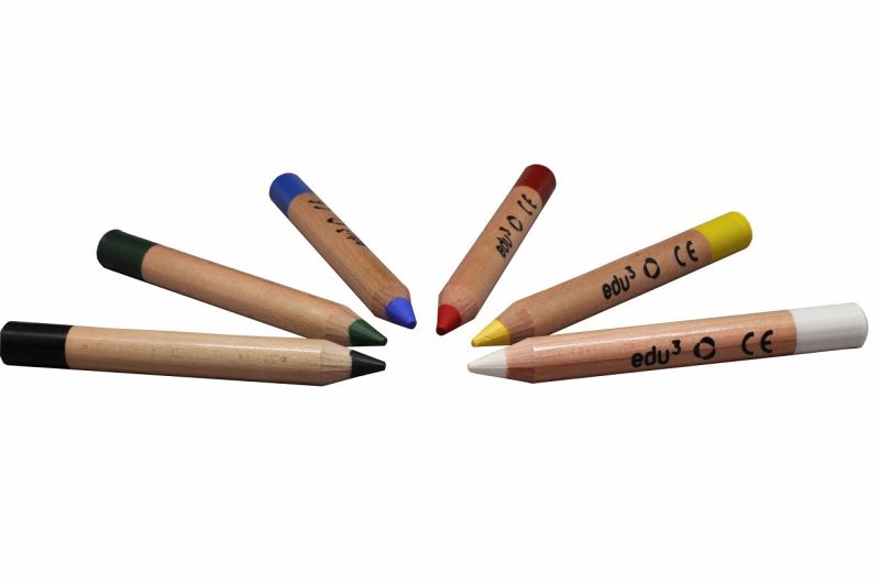 edu³ Schminkstifte sind für feine Konturen und größere Flächen geeignet. Die Farbe ist dermatologisch getestet und einfach entfernbar. In diesem Set finden Sie je einen Stift in gelb, rot, grün, blau, schwarz und weiß.