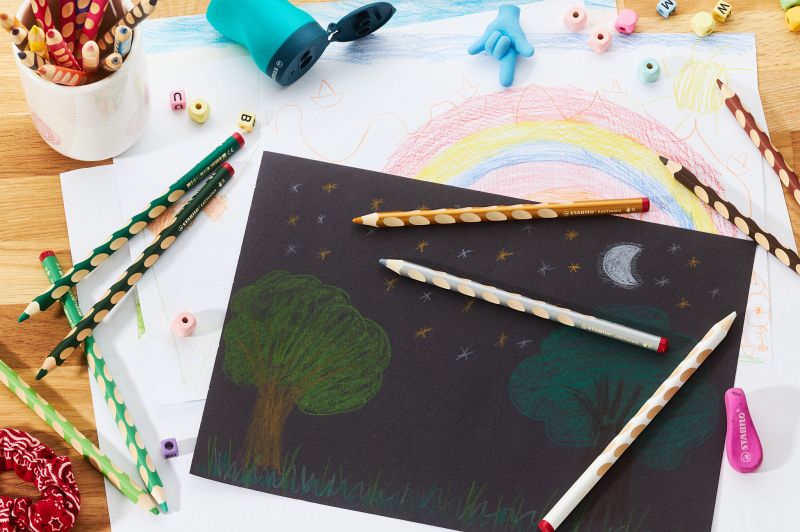 Die ergonomischen Buntstifte STABILO EASYcolors verbinden eine erstklassige Handhabung mit einer ausgezeichneten Qualität. Die Farbbrillanz ist sehr gut und die spezielle Form verhindert ein Abrutschen beim Malen.