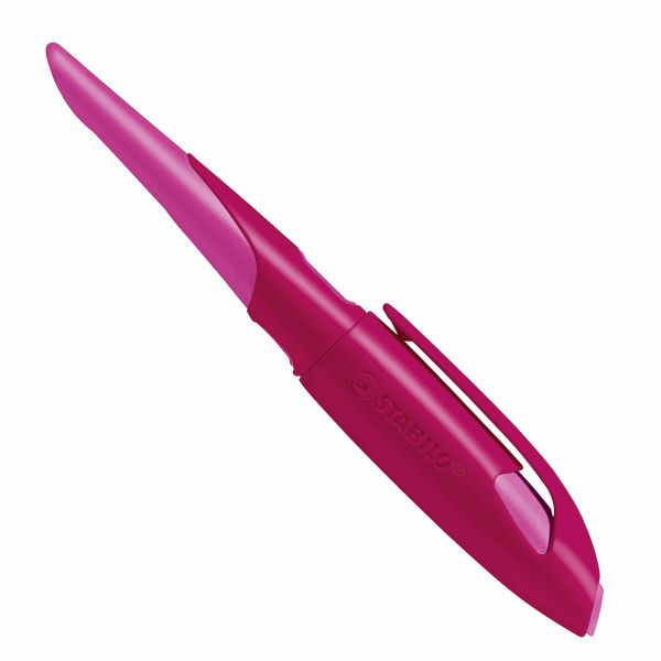 Ergonomischer Schulfüller STABILO® EASYbirdy®, Material der Schreibfeder: Stahlfeder (Iridium-Korn), Tintenpatrone: Standardpatrone, königsblau, löschbar, Material des Schaftes: Kunststoff (Hart- und Weichkomponente), Ausführung der Griffzone: aus rutschfestem Material, Clip: Kunststoff, beere, Feder in 3 Winkeln einstellbar – für weiches Schreiben und ein besonders sauberes Schriftbild, ohne Klecksen und Kratzen. Entspannte Handhabung gegen frühzeitiges Ermüden der Muskulatur. Mit Sichtfenster zur Tintenstandkontrolle, Ausführung der Feder: in Anfänger-Härtegrad A (austauschbar) – eingefasst, zum Schutz vor blauen Fingern, empfohlenes Mindestalter: 7 Jahre, Farbe des Schaftes: beere/pink.