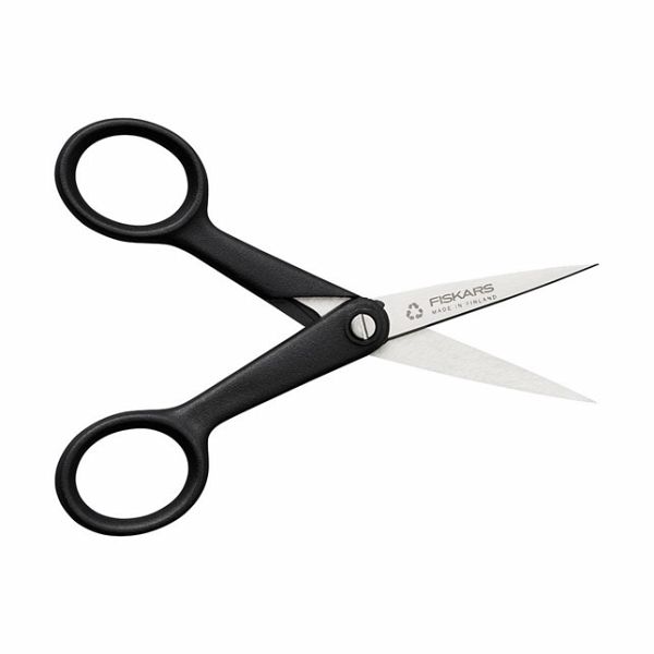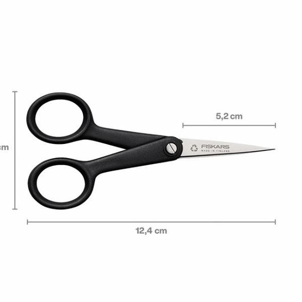 Lieferumfang: 1x Fiskars ReNew Handarbeitsschere, Klingenlänge: 5,2 cm, Gesamtlänge: 12,4 cm, Material: Recycelter Edelstahl/Recycelter Kunststoff, Farbe: Schwarz, 1074541