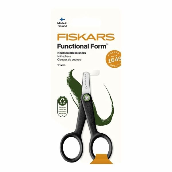 Fiskars ReNew Handarbeitsschere, Länge: 12,4 cm, Recycelter Edelstahl/Recycelter Kunststoff, Functional Form, Schwarz, 1074541