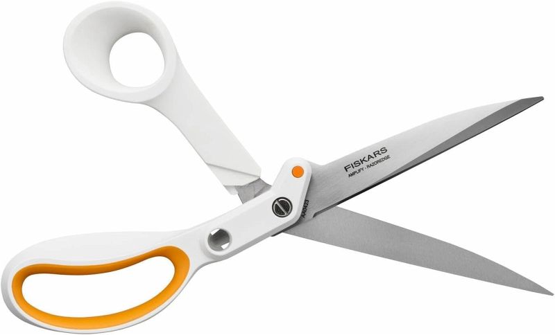 Lieferumfang: 1x Fiskars Amplify Razor Edge Schneiderschere, Klinge: 10,9 cm, Gesamtlänge: 25,4 cm, Gewicht: 165 g, Material: Rostfreier Stahl/Kunststoff, Farbe: Weiß/Orange.