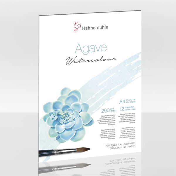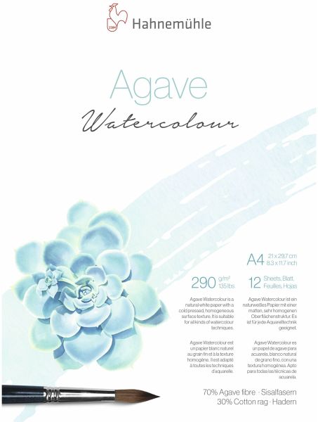 Agave Watercolour ist ein naturweißes Aquarellpapier. Es zeichnet sich durch seine matte und sehr homogene Oberflächenstruktur aus und ist für jede Aquarelltechnik, insbesondere für das Lasieren, sehr gut geeignet.
