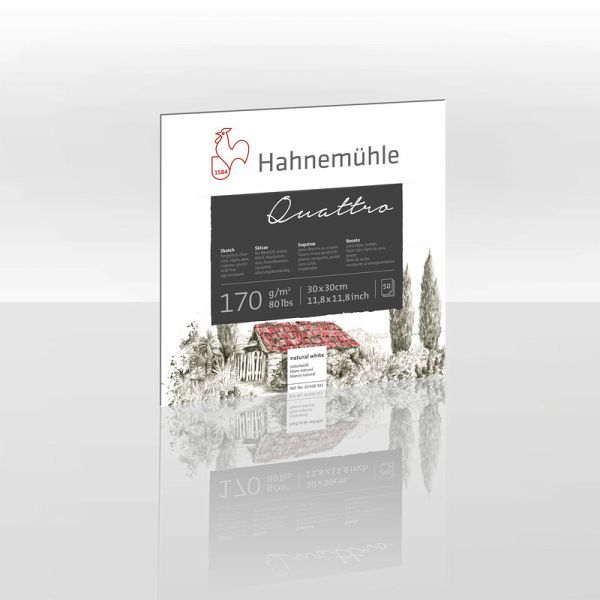 Mit seinem 1,75-fachen Volumen bietet das Papier eine angenehme Griffigkeit und entspricht mit seiner Stärke einem Karton mit ca. 250 g/m². Die leicht angeraute Oberfläche gewährleistet einen guten Farbabrieb. Aufgrund seines Volumens auch zum Aquarellieren geeignet.Der quadratische Skizzenblock. Naturweiß, säurefrei und alterungsbeständig.