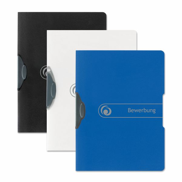 PP-Folie Klemmhefter für ungelochtes Schriftgut, Fassungsvermögen bis ca. 30 Blatt, mit Aufdruck Bewerbung auf dem Vorderdeckel. Farbe: transparent. Preis pro Stück.
