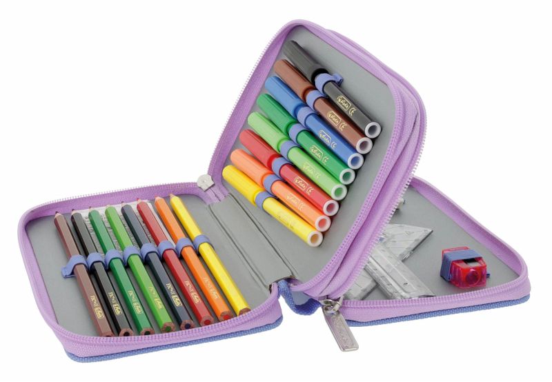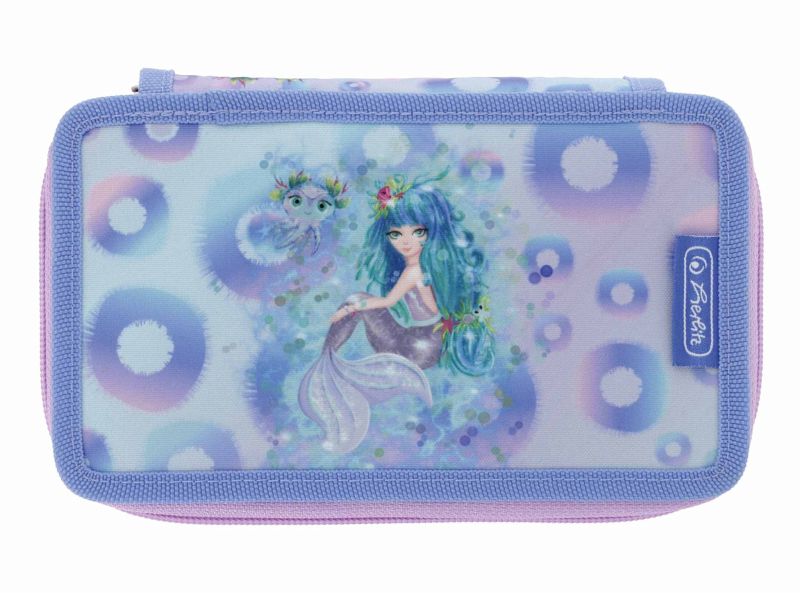 Die Herlitz Federmappe ist der perfekte Begleiter in der Schule, der Uni oder im Beruf. Die Federtasche bietet ausreichend Platz für Stifte aller Art, Tintenpatronen, Radiergummi, Lineal und Anspitzer. Die 2 Klappen mit einem farbigen Reißverschluss machen das Mäppchen zu einem echten Hingucker. Dank der zahlreichen Schlaufen in unterschiedlichen Größen finden in der Herlitz Federtasche alle Utensilien ihren Platz und sind zudem noch optimal geordnet. So behält man leicht den Überblick über den Inhalt der Federmappe und findet schnell, was man sucht. Mit den handlichen Maßen von 19,3 x 11,5 x 5 cm passt das Herlitz Doppeletui 23tlg. problemlos in jeden Rucksack und in jede Tasche und lässt sich so besonders leicht transportieren. Das Innenmaterial des Mäppchens ist farbig mit farbig passenden Stifteschlaufen. Die Federmappe mit dem Motiv Mystic Mermaid trifft jeden Geschmack. Es ist mit 23 Teilen befüllt und beinhaltet 8 Fasermaler, 8 Buntstifte hexagonal, 2 Bleistifte hexagonal, 1 Anspitzer, 1 Radierer, 1 Lineal 17 cm, 1 Geodreieck und 1 Kugelschreiber.