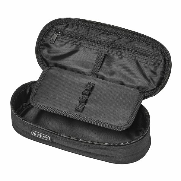 Federmäppchen Polyester 21,5 x 9 x 6 cm, Reißverschlussfach innen, Stifteschlaufen innen. Farbe: schwarz.