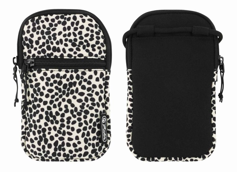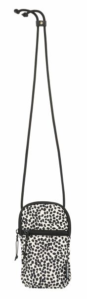 idealer Begleiter für den Alltag; trendy Aufbewahrungsmöglichkeit für Handy, Kleingeld und anderen Dingen; 1 Hauptfach mit Reißverschluss; 1 kleines Frontfach mit Reißverschluss; Umhängeband mit Feststeller; individell in der Länge einstellbar; Material: Polyester; Maße: 11 x 18 x 1 cm; Motiv: Spotted