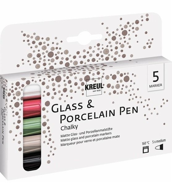- Sanft-matte Glas- und Porzellanmalstifte mit Kreide-Optik