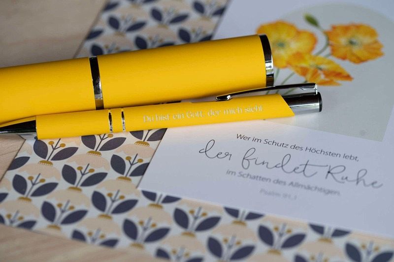 Die schönen Kugelschreiber mit aufgedruckter Botschaft sind der perfekte Begleiter für jeden Tag. In dem ungewöhnlichen runden Etui ist der Stift ein ideales Geschenk zum Geburtstag oder zu Weihnachten oder einfach nur so für alle Schreibbegeisterten.